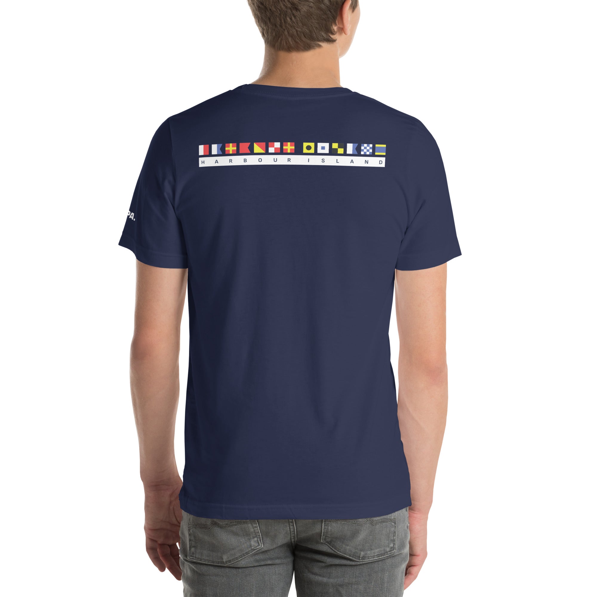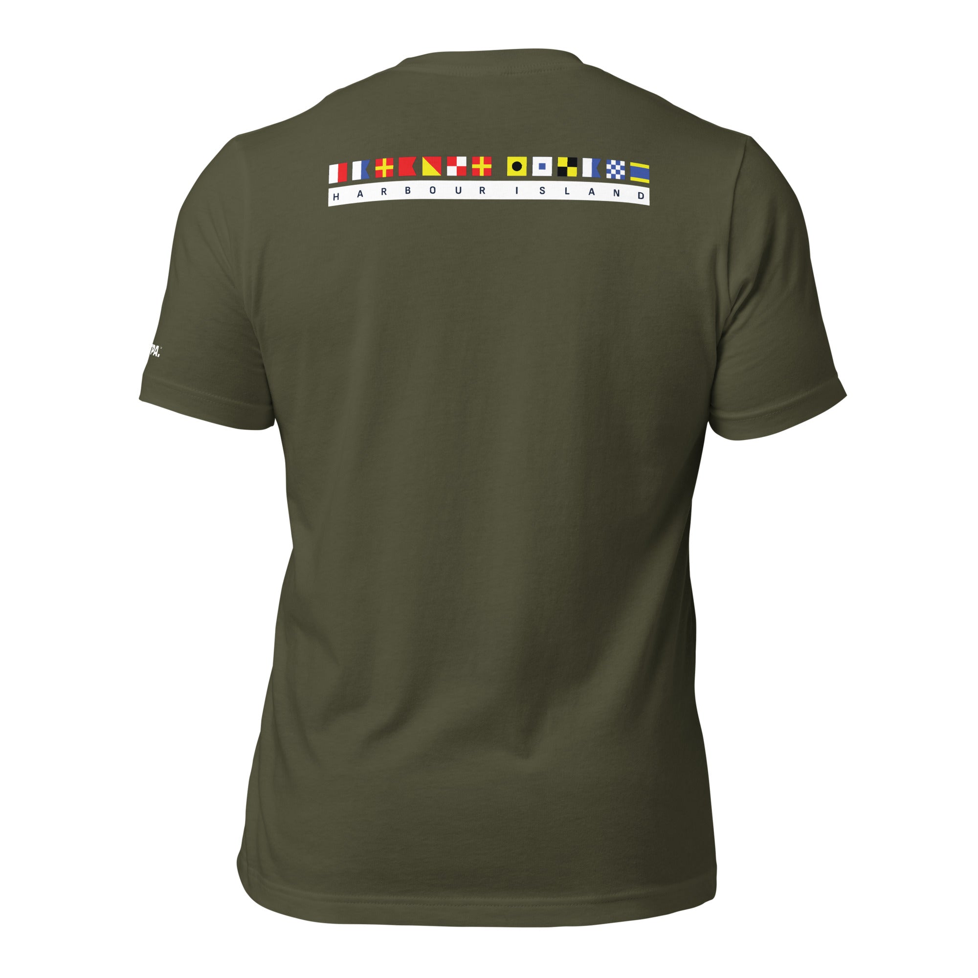 The Harbour Island Maritime Flag™ design features a vertical run of international nautical flags that spell out H-A-R-B-O-U-R I-S-L-A-N-D—a tribute to the island’s maritime roots and its timeless connection to the water.